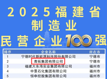 会上发布了2025福建省民营企业100强、制造业民营企业100强、服务业民营企业100强、创新型民营企业100强四个榜单,其中,青拓集团凭借其卓越的经营业绩和强大的综合实力,再次脱颖而出,荣获福建省民营企业100强第二名和制造业民营企业100强第二名的优异成绩。